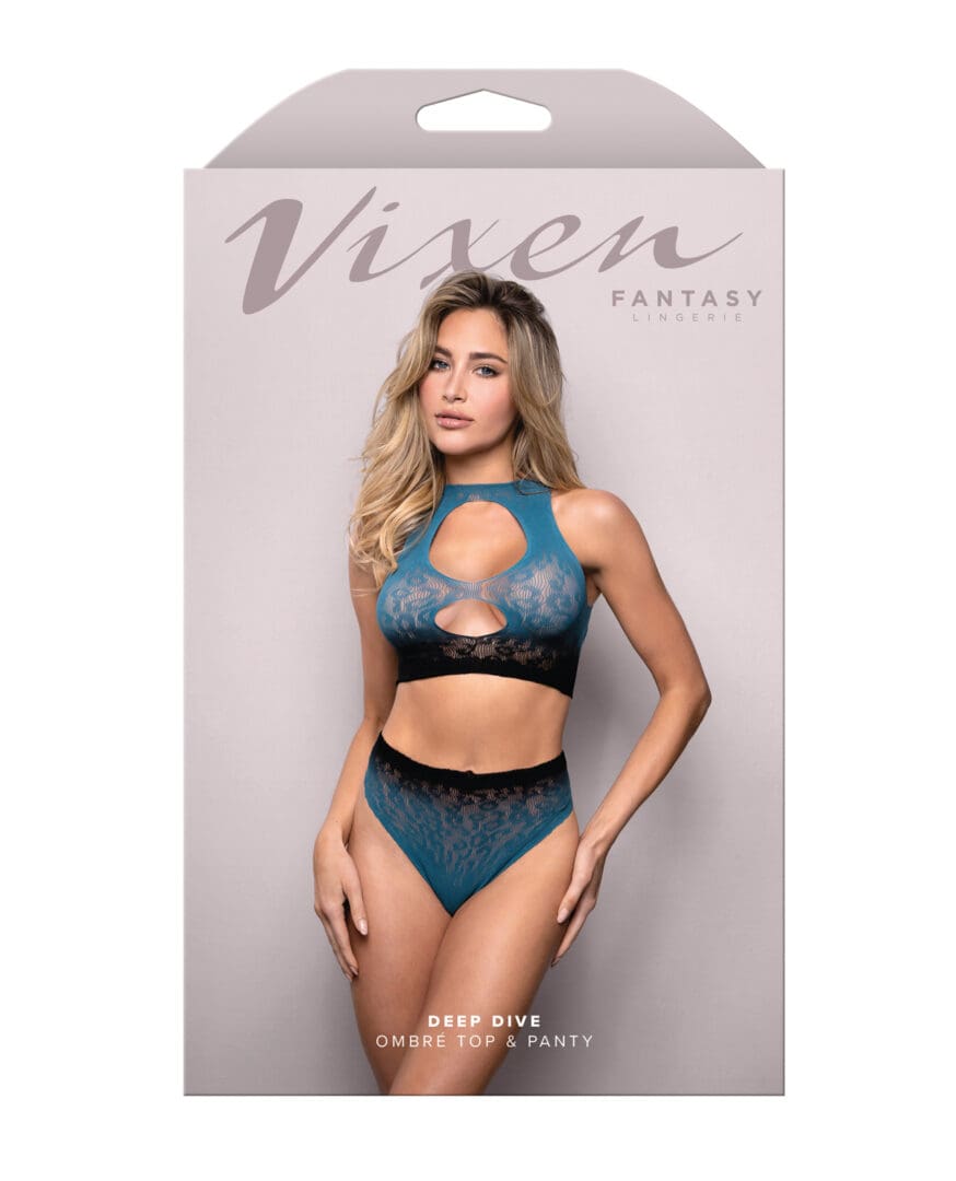 Vixen Deep Dive Ombre Leopard Knit Keyhole Top w/Panty 2 pc Set – Black/Blue O/S